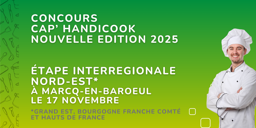 Vous êtes passionné et expérimenté en cuisine (traditionnelle ou collective) et vous souhaitez mettre en avant vos compétences professionnelles ? Vous aimez les challenges et relever de nouveaux défis ? Alors inscrivez-vous vite au concours à destination des personnes en situation de handicap.