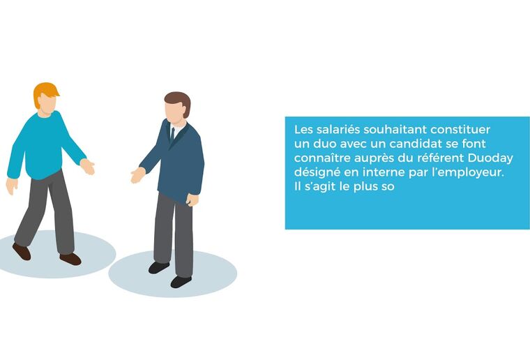 - je me fais connaître auprès du référent DuoDay désigné en interne par l’employeur. Il s’agit le plus souvent du référent handicap du service des ressources humaines.