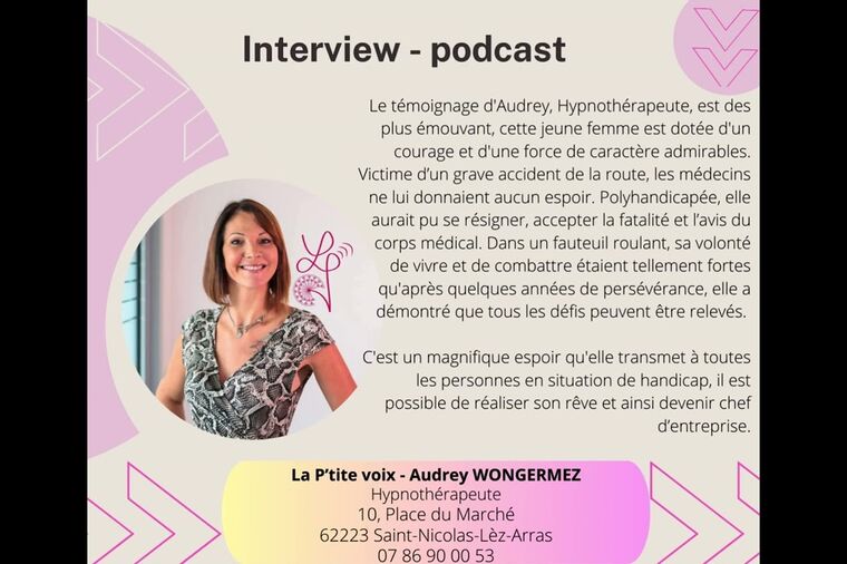 Découvrez le podcast d’Audrey, Hypnothérapeute au cabinet La p’tite voix, qui vous parle de son parcours professionnel et de son accompagnement BGE Hauts de France, Cap emploi et Pôle emploi.